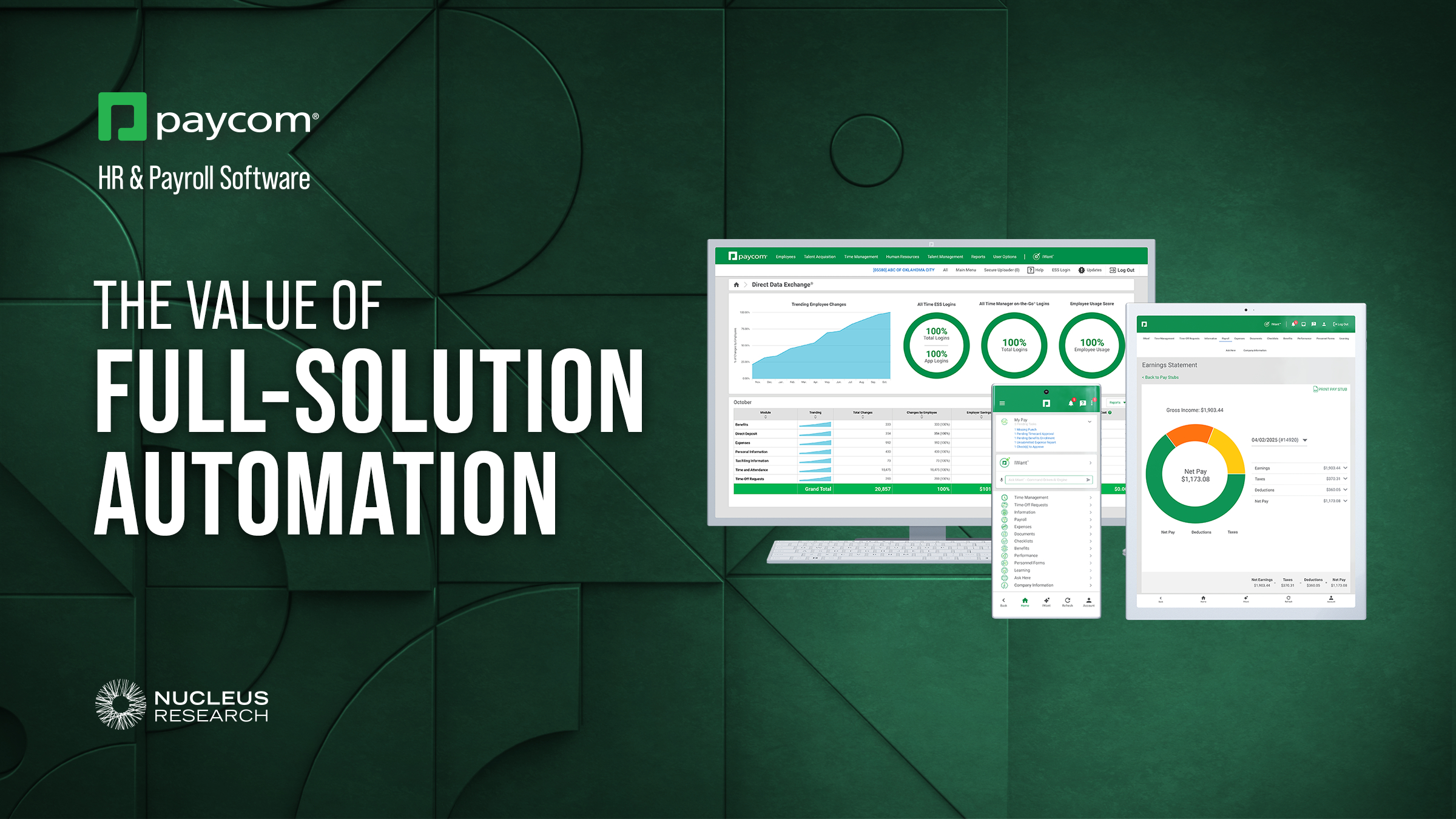 Paycom announced new findings from a Nucleus Research study highlighting the substantial value gained by organizations using Paycom’s full-solution automation.